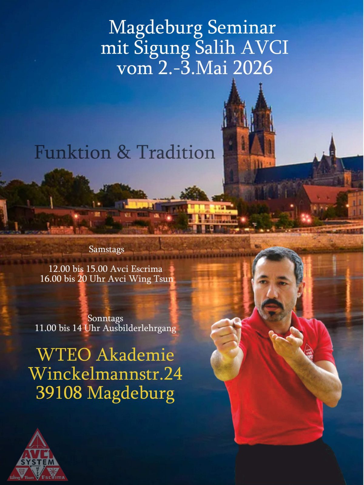 21. und 22. Februar 2026 Großmeisterseminar in der WTEO Akademie Kölndort wo Sifu Salih Avci die erste, von Hongkong zertifizierte Wing Tsun Akademie, in Deutschland eröffnete. 14. / 15. 3 2026mit GM Salih AVCI Havelland bei Sifu Oliver und Sifu Frank Karl Marx Str. 39 14612 FalkenseeP.S. die genauen Zeiten bitte bei den Veranstaltern erfragen. Möglicherweise ist Sonntag schon um 14 Uhr Ende. 2. und 3. Mai 2026in der Domstadt Magdeburg... immer einen Besuch wert 13. bis 17. Mai 2026Antalya AVCI ESCRIMA und AVCI WING TSUN 12. bis 14. JuniCosta blanca Cartagena in Südspanien bei Sifu Alfonso